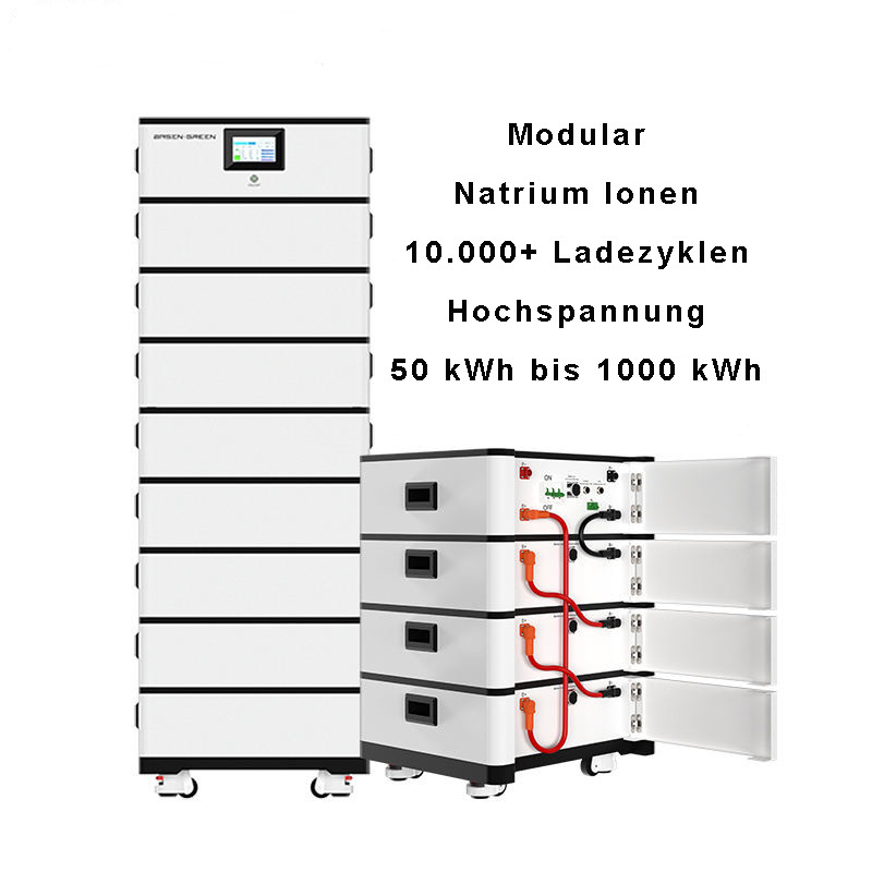 Alle Pakete sind modular kombinierbar. Mehrere Schränke können zu größeren Speicherclustern verbunden werden. Jedes System ist ein Natrium-DC-Speicher auf Rollen und gilt steuerlich als bewegliches Anlagegut.